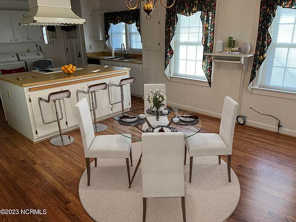 Great home located in Beulaville, NC. Brick veneer with metal standing seam roof. The home was built in 1960 but has been updated and remodeled several times. The last addition added a large master bedroom with large walk-in closet and just down the hall a bathroom with shower and whirlpool. This lovely home has two other large bedrooms with hardwood floors and a large hall bathroom. Home has a large kitchen with island bar that has stove & hood. Kitchen has plenty of cabinets and a pantry. The washer and dryer are located in the large kitchen. The Island divides the kitchen from the kitchen nook area that also has additional built in shelving and cabinets. Home has a formal living room, dining room and foyer with hardwood floors. From carport you walk on to a porch then into the sunroom which has a separate wall heat pump. From the sunroom you enter the kitchen. The home has two separate heat pumps. The finished stairway leads to a floored attic area with over 1,500 sq. ft. for additional storage if you decide a large bonus room. The home is located on a 1.1 acre landscaped lot with plenty of room for the attached one car carport, a two car unattached garage with electric garage doors and two passage doors and a two car unattached metal car shelter. The home also has a propane powered whole house generator that comes on with a flicker of the power. A paved & concrete driveway from Jackson St. on the front through to N. Lee Ave on the back makes easy access from the main road to a quiet town paved street.