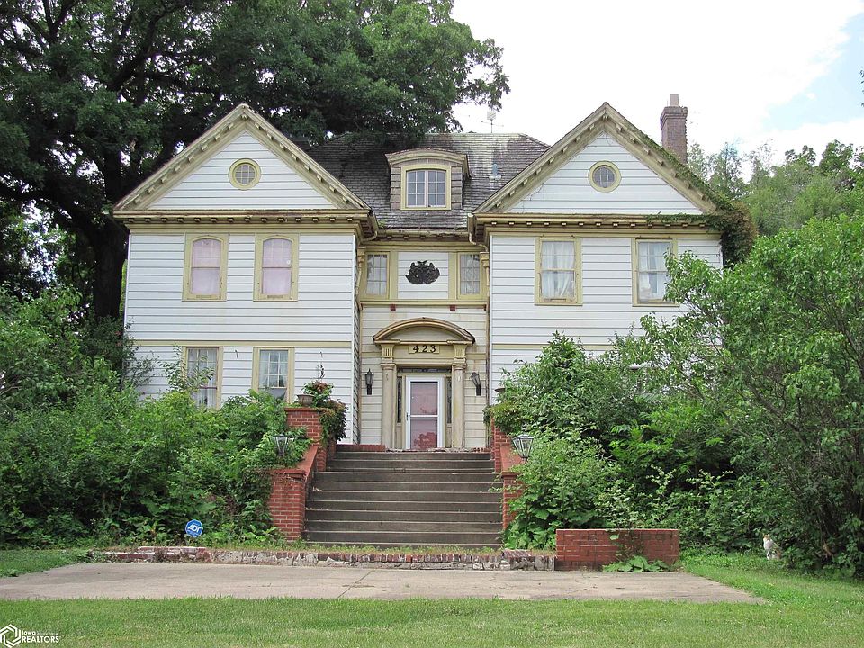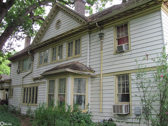 Historical Ottumwa home built in grand style and located in the heart of Ottumwa on 2+ acres. Sprawling room sizes with tall ceilings, former maid's quarters with back stair case. Impressive front box stair case with sky light lit stained rotunda glass ceiling...very unique and very impressive! Hallway to the library features a gentle barrel-top ceiling; both rooms in black walnut. Many unusual features from a time long gone by...are there more secret storage panels yet to be discovered? Spectacular lot with orchard, outdoor fireplace place for grand yard parties, a once exotic flower garden and the original John Morrell guard house! Fireplaces in the master bedroom which features a master bath and built-in cabinetry with lighted vanity, a fireplace in the library as well as the formal dining room and great room. Oh! The possibilities! As much as this one-of-a-kind property has to offer....it is in need of total interior and exterior renovation.