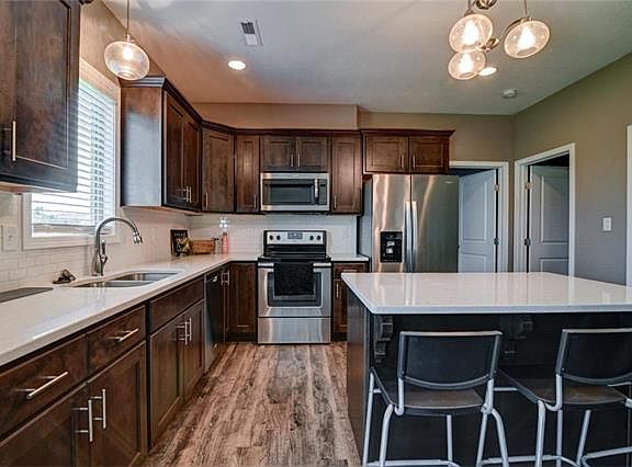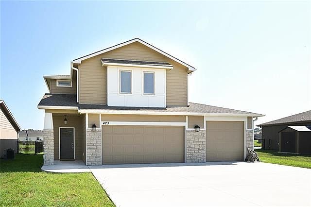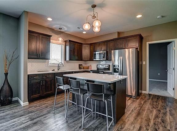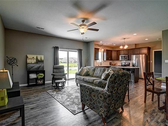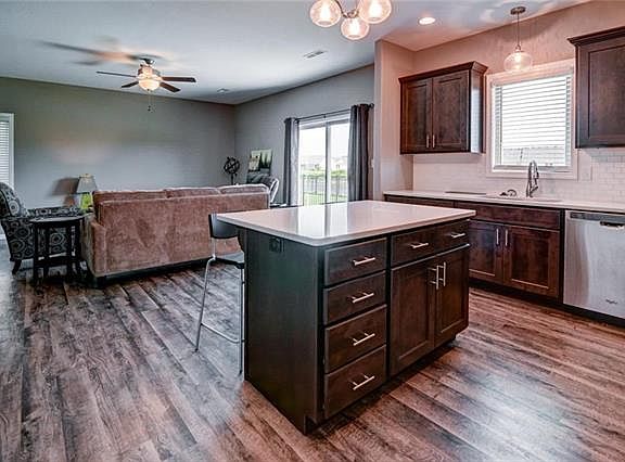 Beautifully constructed 1.5 story single family home in East Manhattan! Open concept main floor featuring wood grain luxury tile flooring, spacious kitchen with island and granite counters! Enjoy your morning joe everyday on the patio with a lake view! Spacious main floor bedroom with walk-in closet, perfect for an additional family room, office, etc. Second floor laundry room, three additional bedrooms, guest bathroom and master suite! Master has walk-in closet, bath with double sinks and onyx counters.