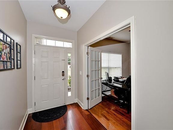 Beautiful craftsman home situated on cul-de-sac w/ a spacious side yard! Hardwood floors greet you at the front door w/ built in smart lock. Bedroom on main level w/ full bath could also be used as office w/ french doors! 2 story family room has cozy fireplace! Kitchen has SS appliances & view to family room. Extremely large bedrooms upstairs all w/ vaulted ceilings! Master bedroom w/ fantastic master bath has shower & soaking tub w/ large walk-in closet! Additional spacious bedroom has 2 closets! Private fenced backyard w/ patio & firepit is perfect for entertaining!