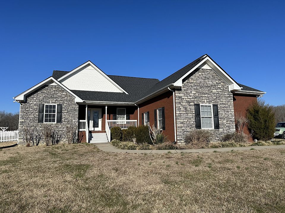 Set on a beautiful 2.59-acre parcel, this full brick home with stone accents offers a rare blend of tranquility and space. Whether you envision outdoor gatherings, gardening, or simply relishing the open space, this acreage provides endless possibilities. REAL sand & finish hardwood floors exude warmth throughout, complemented by a brand-new roof (2023) ensuring durability. HVAC replaced 5/18. Pella garage door replaced 5/18. Step into the spa-like master bathroom with double sinks and a whirlpool soaking tub, ceramic tile floors. Organizational bliss awaits with a spacious pantry in the well-appointed kitchen. This home seamlessly combines style and practicality for the ultimate living experience. Bring man’s best friend with an existing white picket fence securing a portion of the back yard oasis! Detached storage building will remain. Needs interior paint but other than that it’s move in ready!