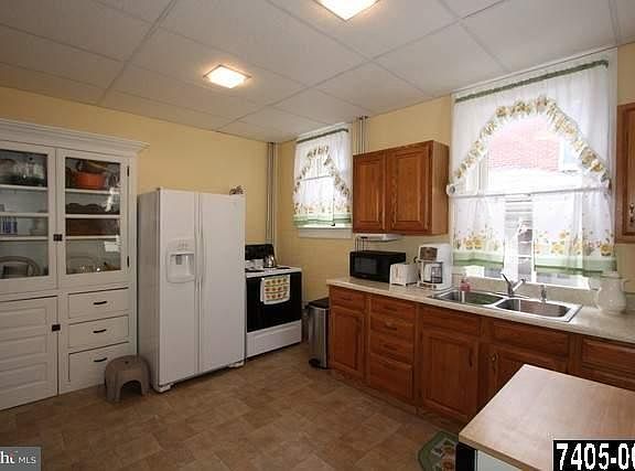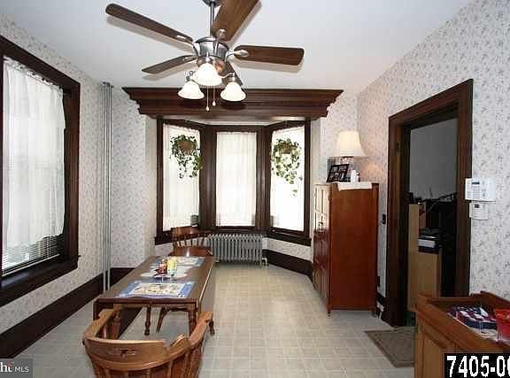Home Owners, Renters, Investors take a look at this charming Victorian home with original woodwork. 4 bedrooms with wood floors. Large covered front porch leads the way into formal living room and dining room. Updated kitchen with built in china cabinet. 1st floor office and half bath, 3rd floor den or 5th bedroom. Faux fireplace in living room. Spacious home on level yard with off street parking.