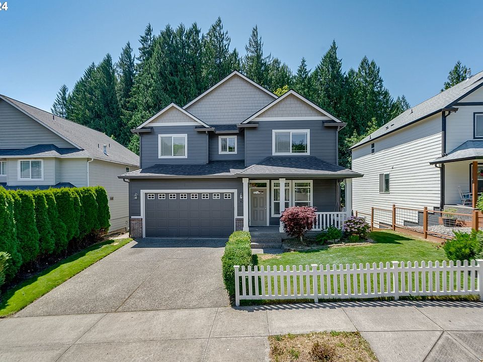 Ridgefield location with a white picket fence! Enjoy the privacy of a greenbelt lot! No neighbors behind you. New roof, water filtration system and recently painted interior & exterior. You'll be surprised at the bedroom size of this 4-bedroom home. 3 have a walk-in closet. 2nd floor utility room Formal living room w/gas fireplace. Formal dining, Family room with slider to large covered outside deck. The kitchen has been updated with granite counters/backsplash and new lighting. The home is in Cedar Ridge, with no homeowner's association fees. Lots of nice amenities await for you in this turnkey ready to move in home!
