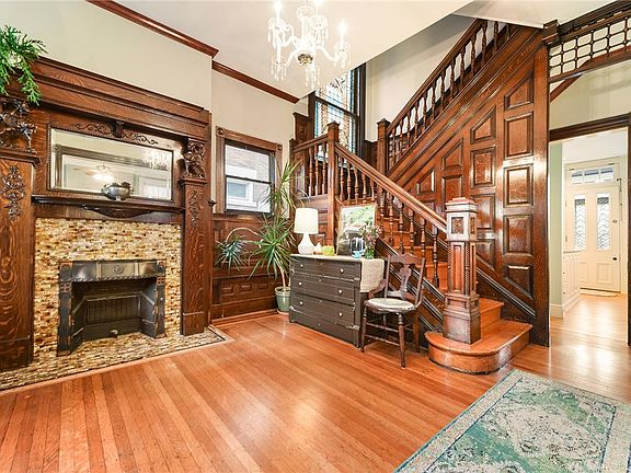 This charming 5 bedroom, 2 bathroom, featuring first floor powder room. Stain glass windows grace the living spaces with natural light, creating warmth and inviting atmosphere. Original floors throughout showcase the enduring craftsman and classic style. The 5 bedrooms are ample space for family or guest. This residence seamlessly blends historic charm with modern functionality. Each room tells a unique story, making this home a perfect combination of authenticity and thoughtful design. Step into a world of comfort meets sophistication, and where the past and present harmoniously coexist.