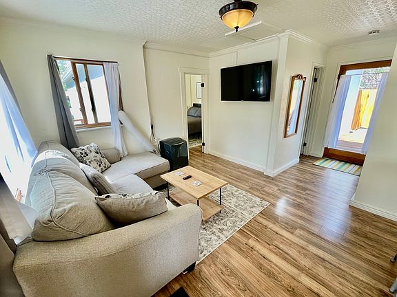 Downtown Montrose 2BD/1BA, 500sq/ft fully furnished apartment is available for rent. The first bedroom comes with a queen size bed and full closet. The second bedroom is equipped with laundry and features a closet and queen bed. The kitchen features a full-size fridge, gas stove, and bar seating. There is not a dishwasher in this unit. The xeriscaped backyard has a spacious deck and is surrounded by a 6ft tall privacy fence. Two off-street parking spaces are provided at the front of the property. Please note this home is a duplex with shared walls but has separate entrances and residences. Maximum of two tenants. 1 small Pet is OK with landlord approval. All utilities and fiber high speed internet are included. What I love about this home is its walkable proximity to downtown, grocery stores, and coffee shops. City Market grocery store is 2 blocks away, main street shops and restaurants are only 3 blocks away, and we have a great coffee shop and juice bar right across the street. All utilities, water/trash/, wifi internet and yard/snow maintenance are covered in the monthly rent. Cable TV is not provided. No smoking allowed inside the home. Lease is available for month to month, 6-month, or 12-month. 1 Small Pet is OK upon approval.