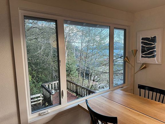 This home features a renovated kitchen and bathroom including MSI quartz countertops, Kraus stainless steel sink and COREtec luxury vinyl plank flooring. Two new 8 foot windows from Alaska Glass reveal stunning views and natural light which brighten the remodeled great room on the main.