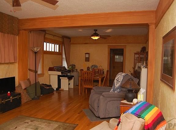 Charming north side bungalow located in one of Pueblo's historic areas. Tastefully updated while retaining it's original charm, this lovely home offers a very warm, inviting main level with original hardwood flooring, built-ins, window coverings and a paint scheme that compliments and highlights all of it's charismatic features. Enclosed front porch is perfect for relaxing during the summer and upcoming fall evenings. Living area features a very attractive tiled, wood burning fireplace with Tiffany inspired ceiling fans. Adjoining formal dining room with built-in corner china cabinet. Kitchen has been updated with recent flooring, period styled tin ceiling, full appliance package that includes built-in microwave, refrigerator, electric range/oven, dishwasher and conveniently houses the relocated laundry area. The remodeled full main bath serves the three bedrooms well. It has been updated with an added, separate walk-in shower in addition to the tub. Recent vanity/sink/fixtures, recent flooring, period styled tin ceiling as well. Basement has it's own entrance from the outside as well as an interior entry. Basement features it's own full bath, kitchen, laundry area, living and one bedroom plus an additional room. One car detached garage. Very close to Parkview Hospital, Mineral Palace Park.