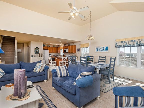 Great opportunity to enjoy beautiful sunsets over the Bay on private deck of the unique upside down 4 bed and 3 full bath townhouse. Interior features a spacious open floor plan perfect for families and/or renters. Updated kitchen with newer appliances and granite countertops! Other amenities include an outside shower, private garage with additional off-street parking, central air, economical gas heat and much more. Coming fully furnished less personals so there is nothing to do here but relax and enjoy!