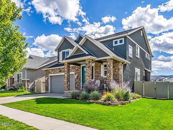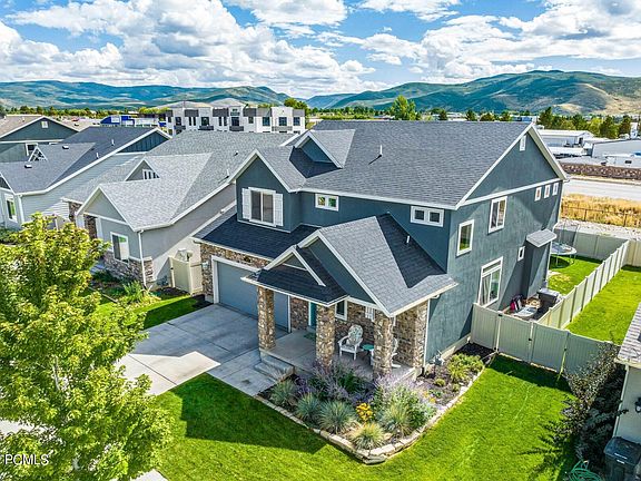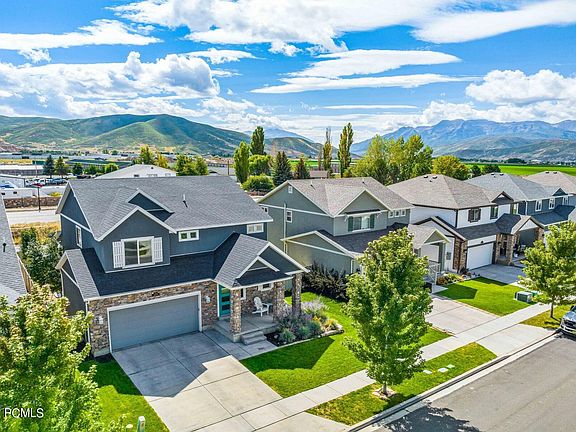 This well taken care of home sits on a great lot with amazing views of Mt. Timpanogos. When you open the front door, you will notice the 11-foot ceilings through-out the Main Level. The large open great room, dining area, and kitchen has large windows to let in the views and plenty of sunshine. The kitchen has an island that can comfortably fit 8 people, beautiful full overlay maple cabinets, pantry, and all the appliances are upgraded including a stainless-steel dishwasher, and natural gas range. The great room features built-in cabinets along with new upgraded carpet that was just put in a year ago. The main floor also has a guest bedroom that could also be used as an office and a full bathroom. Head to the backyard and enjoy the covered trex deck and custom flagstone patio that is the perfect place to relax and enjoy the view. As you come upstairs there is a large loft area with views toward Midway. Then a spacious Owner Suite with more large windows to take in the view. The spa like bathroom has two sinks, granite countertops, and fully tiled luxurious shower, and ample sized closet. Two more bedrooms, full bathroom, and laundry room with full cabinets and sink finish off the 2nd level. The basement is ready to be finished with either one or two more bedrooms, bathroom, and a family room. The area going down to basement is finished with tons of storage under the stairs. A brand new upgraded furnace was just put in this July! This home just got a fresh coat of paint where needed so it is move in ready! Cottages at Valley Station is within walking distance to schools, shopping, coffee, and restaurants! It has a park and great walking path around the neighborhood. It also has fiber internet! Only 10 minutes to Deer Creek Reservoir and 15 minutes to Jordanelle Reservoir and Deer Valley Gondola and the future Mayflower Ski Resort!