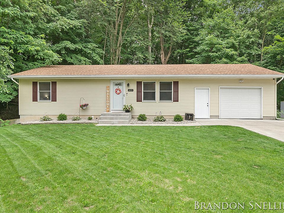 Sharp and move in ready ranch positioned perfectly in the Greenville community. Quiet street and beautiful setting with just under an acre lot. The Main floor hosts 2 bedrooms, 2 full bathrooms, living room, dining room and kitchen. Lower level provides rec. room and third large bedroom as well as mechanical space and tons of storage. Exterior of this home offers privacy and the feel of a country setting but only minutes from shopping, expressways and more. Tons of updates throughout including finished basement, paint, bathroom updates, gutters with leaf guard, new roof in 2017, new garage door, new concrete driveway, walkway, porch, and stamped back patio with fire pit area. Don't delay, call to schedule your private tour today! No offers presented prior to Tuesday 7/20 at noon.