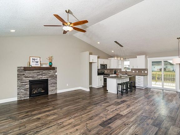 Great community and school with just a short drive to Des Moines you don't want to miss this 3 bedroom ranch style home that offers over 1535 sq ft and a cozy front porch. Beautiful open floor plan with vaulted ceilings and stacked stone fireplace in family room. Kitchen features Bertch custom cabinets with self-closing drawers, tile backsplash, granite countertops, stainless-steel (slate) appliances, large center island is open to the family room and dining area with patio door accessing to a nice 12 x 12 back deck. The two bathrooms have ceramic tile in tub/shower and the laundry is conveniently located on the 1st floor. Master suite offers a huge walk-in closet, and double vanity in the master bath w/granite countertops. Not to mention a roomy 3 car garage, hardwood floor, maintenance free siding and stone exterior, and option to finish basement! Westfield Horizons neighborhood now offers fiber optic internet! Call today for a private showing!
