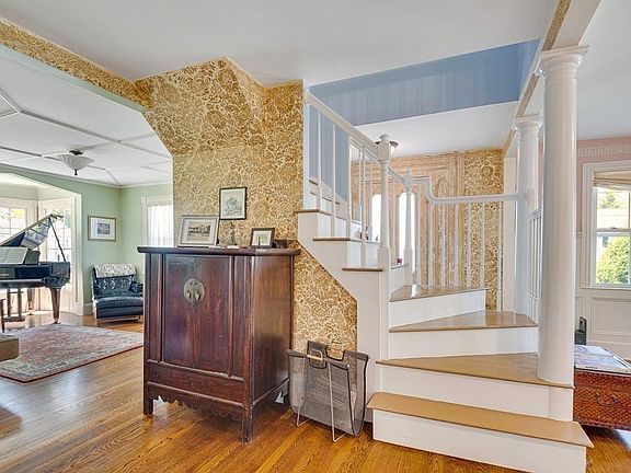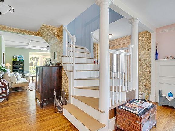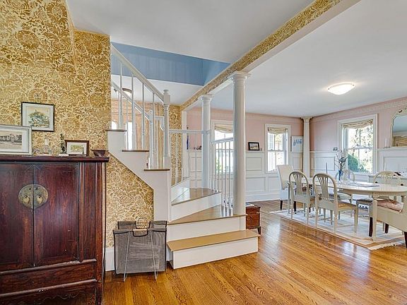 This unique character filled home is one of the most distinctive homes. The Samuel Holton home has Greek Revival features in the front of the home with columns & Gothic Revival features in the rear ell with steep gables & a square bay. The open, turned staircase is dramatic & also creates an open flow to both the fireplace dining room with wainscoting & the living room with a bay window large enough to nestle a baby grand piano. The large updated kitchen features a mudroom, center island, stainless steel appliances, & an grill inset into an old beehive oven opening. Versatility abounds with 2 master bedroom options - 1st floor bedroom connected to a spacious double sink bathroom or 2nd floor bedroom suite with walk-in closet & private bath. 2 additional bedrooms, large center hall, bath & family room with French doors complete the 2nd floor. 2 car garage, 2 driveways (Englewood & Washington), large private lot & close to the Fells & town complete this home. Offers due by 10am 5/21