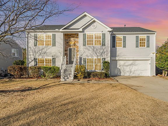 *Multiple Offers have been received. Please see agent comments for next steps* This beautiful home is located in a great community within the Wake County school system. This unique floor plan boasts a main level primary bedroom as well as 2 additional bedrooms. Escape to the lower level and enjoy the rec room, bedroom and full bath. Perfect for a mother in law suite. Kitchen features granite, updated cabinets and tile backsplash that opens to an expansive family room. Step outside to your outdoor oasis. Yard features a large deck and a fenced yard. Community Pool within walking distance. Your kids will forever thank you for buying this home.