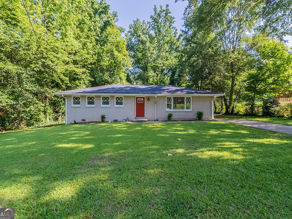 Welcome to this charming brick ranch nestled in the peaceful Harsron Creek community of Stone Mountain. This inviting home offers a bright, open family room that flows easily into a cozy eat-in kitchen, three comfortable bedrooms, and a convenient half bath for guests. Relax in the private backyard with plenty of space for outdoor gatherings, gardening, or quiet afternoons. A long driveway provides ample parking. Located just minutes from I-285, local schools, parks, and everyday shopping - this home combines comfort and convenience in a great location. Come see it and make it yours! This home has been virtually staged to illustrate its potential.