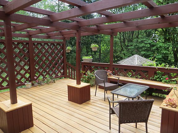 This well kept, custom built,3bdr/1.75bth rambler on 5 gorgeous, treed acres is ready for a new owner! Welcoming entry offers a patio overlooking a water feature & a covered front deck. Enter into the home and immediately you will notice the beautifully refinished Pine floors throughout. French doors off the LR/FR lead to a spacious deck & a gazebo. There's a cozy wood stove for extra comfort & an office space off the kitchen! The porch off utility room is plumbed for a propane BBQ and it stays, too. The property offers you plenty of trees with trails and an expansive yard. Plenty of room to set up the volleyball net or pitch some back yard tents! Garden space too! Oversized dbl garage plus a det. carport w/storage shed. A winner for sure!