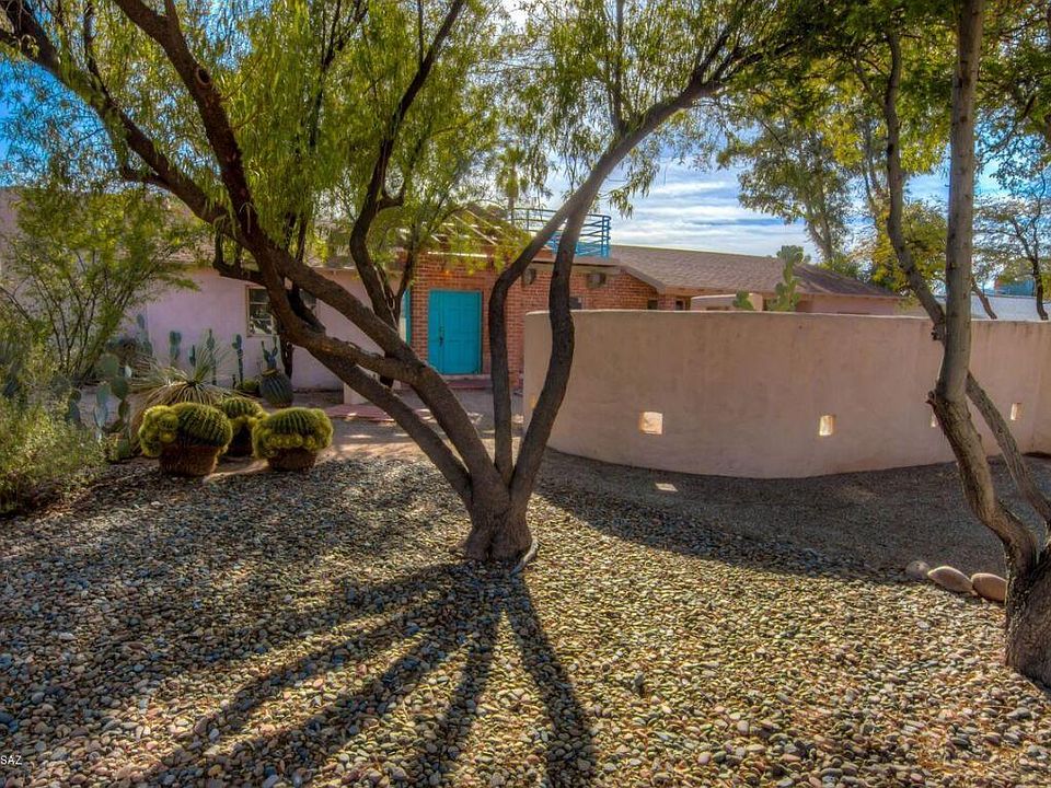 Seller will accept or counter offers between 300K and 315K. Come and see this unique, one-of-a-kind historic San Clemente home at a good price! Remodeled in 1992 by well-known John Wesley Miller. This home has two wings separated by outdoor living room with fireplace and entertainment deckabove. Enormous corner lot with huge back yard set up with Aquaponics features and koi pond that conveys with the purchase. Double gate access to huge back yard for all your toys, space for RV. Low care yards, zoned heating and cooling, lots of storage including a shed. Updated kitchen and light and bright floorplan. Near Reid park tennis, golf, bike trail, rec facilities. Easy access to UofA/downtown. Hurry!