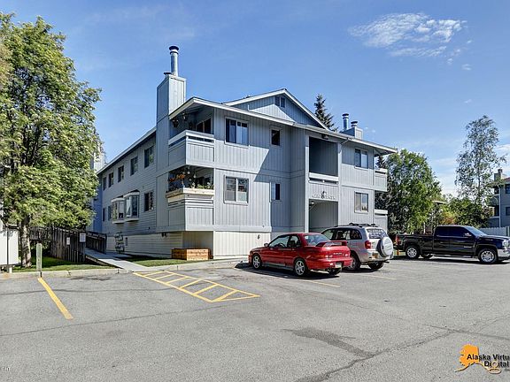Bright & Beautiful condo conveniently located near the U-Med district with beautiful views of the Chugach mountains! Master bedroom features two large closets adjoining the master bathroom. Tile backsplash in bathrooms, designated parking space in a tuck under heated garage, cozy fireplace, washer & dryer in the unit, storage, and more for you to see.
