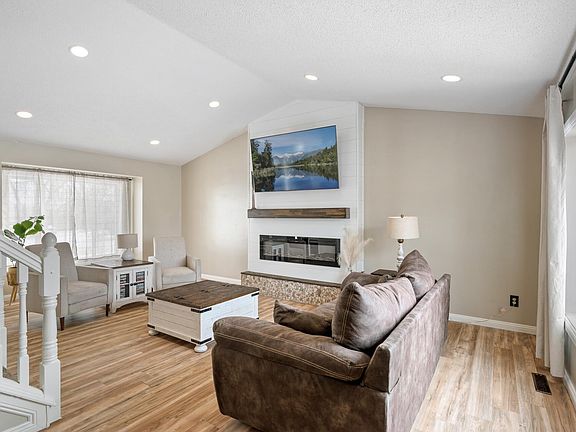Welcome to 4230 Lake Ridge Drive! This inviting 3-bedroom, 2-bathroom modified two-story home, nestled in the heart of Big Lake, is sure to impress. Step inside to a bright and spacious foyer that leads into the open main level, featuring a beautiful new fireplace and updated flooring and lighting throughout. The dining area opens to a stunning three-season porch, offering the perfect place to enjoy Minnesota’s changing seasons – whether sipping coffee on crisp fall mornings or unwinding on warm summer evenings. The main floor also includes a convenient laundry room, a generous dining room, and a well-appointed kitchen with plenty of storage. Upstairs, you'll find three comfortable bedrooms and a full bath. The lower level offers an office space and a versatile flex room that could easily be converted into a fourth bedroom and bathroom, with the rough-in already in place. Outside, entertain on the concrete patio by the cozy fireplace in your fully fenced backyard. Recent updates include new siding, roof, main floor electric fireplace, flooring, and lighting. Don't miss your chance to make this stunning house your new home!