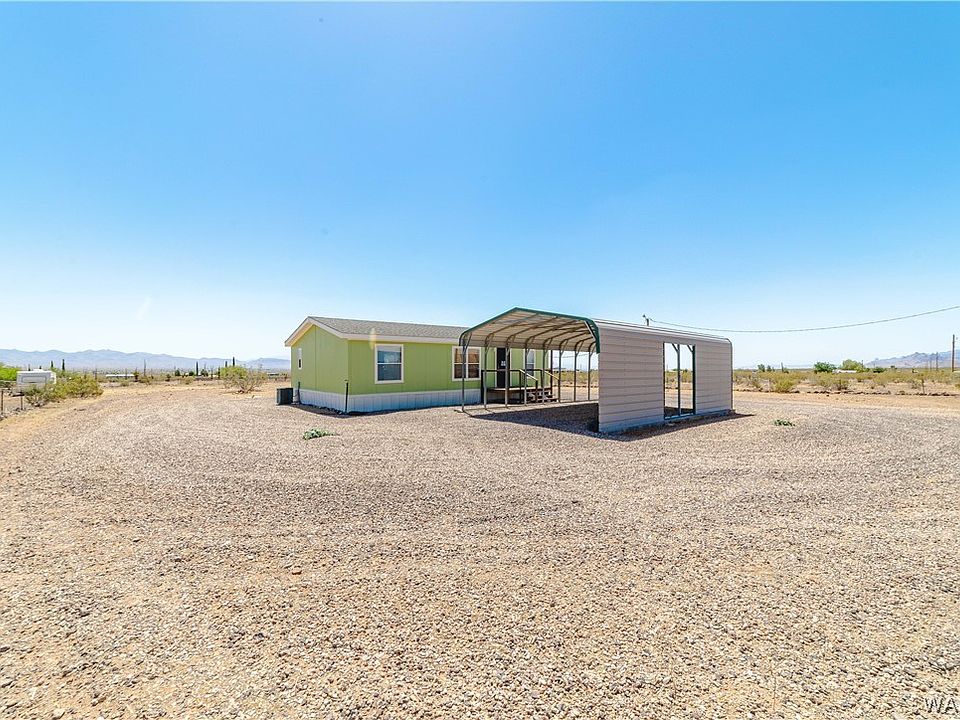 Discover this charming 2007 double wide manufactured home nestled on 1.11 acres just off Hwy 68 in Golden Valley, AZ. This home features 3 bedrooms, 2 bathrooms, and a spacious double carport with just over 1000 sqft of living space. New roof installed in 2022. Located in a quiet neighborhood with panoramic mountain views, there's ample room for animals or future buildings, making it a perfect blend of tranquility and potential.