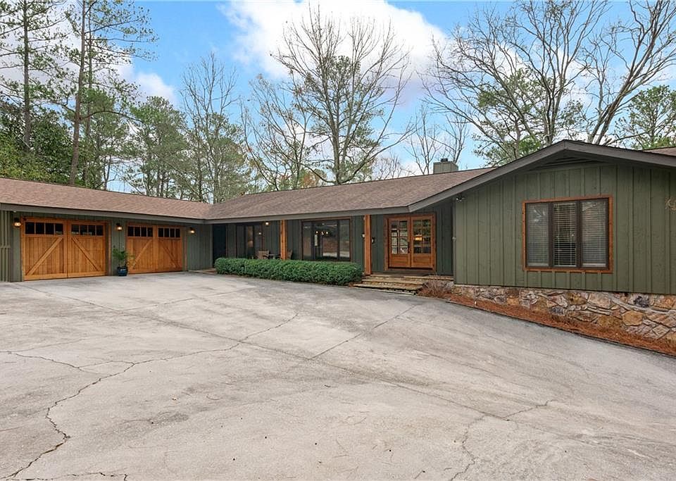 Discover an exceptional ranch-style private retreat on a quiet lane in the sought-after Atlanta suburb of Vinings. Inviting design, modern convenience, and undeniable appeal come together effortlessly. Expertly curated and thoughtfully built, this home offers the perfect blend of welcoming charm and modern amenities, designed for those who appreciate quality and comfort. Step through double doors into the vaulted Great Room, featuring hardwood floors and exposed beams that add character and warmth. The expansive Great Room, bathed in natural light from double sliding glass doors, open to a sprawling 40' deck overlooking a serene, tree-lined backyard - perfect for entertaining or unwinding in a peaceful setting. The heart of the home is the award-winning kitchen, a culinary masterpiece with a massive island, dual beverage refrigerators, solid Cherry cabinetry, stone countertops, and a hammered copper farmhouse sink, all complemented by stainless steel KitchenAid appliances. Convenience and comfort are paramount in this home. The mudroom provides access to the front porch and the two-car garage and features tiled flooring, storage cabinetry, a laundry area with new countertops and sink, and a half bathroom. The Primary Suite is a true sanctuary with floor-to-ceiling windows, cedar-lined closets, and a double-sided fireplace shared with the ensuite bathroom. The ensuite offers heated flooring, double sinks, a claw-foot soaking tub, and a multi-head shower for a spa-like experience. Additional bedrooms offer picturesque views of the lush surroundings, and the secondary bathroom is conveniently located near the additional bedrooms, providing easy access and functionality for family and guests. On the terrace level, discover a secondary day-lit living room with a stone fireplace, a fourth bedroom currently used as an office, and a third full bathroom. The terrace level also features a secondary driveway leading to a versatile garage and workshop space, offering storage for up to four vehicles. Equipped with air conditioning and heating, a 14' wide by 7' high insulated garage door with a side-mounted opener, a loft for additional storage, a work sink, and specialized shop lighting, this space presents endless possibilities. Whether used as a home workshop, studio, fitness area, or additional living space, it adds incredible value and flexibility to the home. Stone walkways connect the terrace and main levels seamlessly, while ample paved parking and the main level two-car garage ensure convenience for residents and guests alike. 4230 N. Elizabeth Ln, SE, offers an elevated and inviting lifestyle in a prime location with sought-after Cobb County taxes and no HOA. Option to apply for membership at the Cochise Club and enjoy the swim, tennis and social amenities it offers. With impeccable design and versatile spaces, this home provides the perfect blend of convenience and privacy. If you seek a remarkable residence with unique character and exceptional possibilities, this extraordinary property welcomes you.