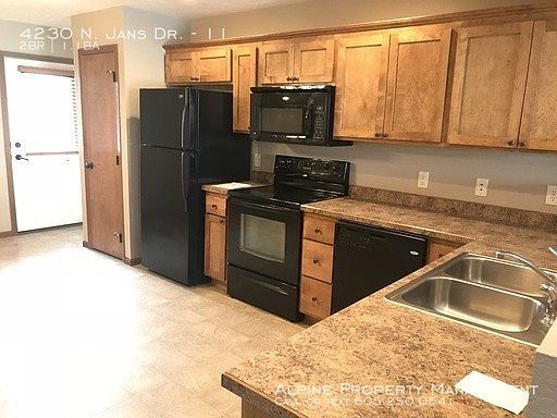 SCHEDULE A SHOWING ONLINE AT: showmojo.com/lh/b5e99830ff Schedule a showing today for this great 2 bedroom/1.5 bath townhome for rent at 4230 N Jans Dr - 11. in Sioux Falls, SD!! The main floor features a large eat-in kitchen equipped with refrigerator, stove, dishwasher, and microwave as well as garbage disposal in the sink. There is also a half bath with washer/dryer and a sizable living room on the main floor. Upstairs you will find the very spacious master bedroom with two closets, full bath with tub shower, and a guest bedroom. The townhomes also include central air, an attached single stall garage, and a large off-street guest parking lot. - Pet Friendly - monthly fees and breed restrictions apply (1 pet max and 45lb weight limit) - $45 application fee per adult - $895 security deposit - Water, lawn/snow care included with rent. - Tenants pay gas, electric, garbage.! Professionally leased by Alpine Property Management Back Patio Central Air Lawn/Snow Care Provided Multiple Private Entrances Non Smoking Off Street Guest Lot Pet Friendly Single Stall Attached Garage Stove Tub Shower Washer/Dryer In Unit Water Included With Rent