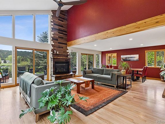 Upper Bear Creek Mountain Haven. Located in the highly sought-after Upper Bear Creek neighborhood, this exceptional 4 bedroom, 4 bathroom, 3378 Sq Ft mountain retreat combines natural beauty and modern comfort. Situated on a flat, easily accessible lot, the property offers unobstructed views of Hicks Mountain, peaceful pond vistas, and the soothing sights and sounds of Bear Creek. Spacious decks wrap around the home and include a hot tub, a flagstone patio enhances the yard, and a second private creek side patio is perfect for relaxing, entertaining, or simply soaking in the surrounding nature. Inside, the open-concept main floor boasts a bright and airy living room with vaulted ceilings, sweeping views, and a beautifully updated modern fireplace. A cozy den with second fireplace provides an intimate space to unwind, while the well-appointed kitchen opens directly to the deck’s outdoor kitchen, making entertaining seamless year-round. Upstairs, the primary suite features a walk-in closet and panoramic views of the mountains and pond. The updated ensuite bathroom includes a luxurious BainUltra spa tub, walk-in shower, and dual vanities. An additional 2 bedrooms, a full bath and laudry room complete the upper level. The lower level offers an additional bedroom, a full bath, and a flexible living area with walk-out access. The home features passive solar for year-round energy efficiency. The oversized garage includes durable and attractive epoxy flooring, an electric vehicle charging station, and plenty of space for a workshop or mountain gear. Located just minutes from Downtown Evergreen and Evergreen Lake, outdoor enthusiasts will love the private access to Elephant Butte and miles of nearby trails, plus close proximity to the Mt. Blue Sky Wilderness Area. Don’t miss your chance to own a rare piece of Upper Bear Creek paradise. Xfinity high-speed internet. VISIT THE WEBSITE FOR MORE INFORMATION AT: https://homes.livsothebysrealty.com/4230southmeadowbrooklane