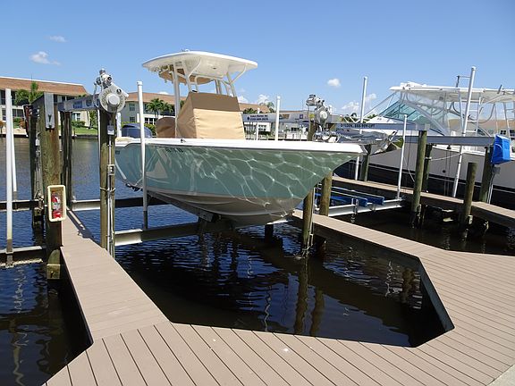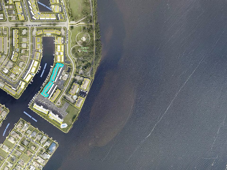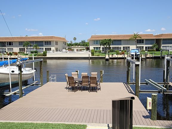 GULF ACCESS WITH NO BRIDGES!! Beautiful location off of Beach Pkwy, sitting on the Navaho Canal just one turn out to the river! Beautiful 2nd story water views, this condo features a deeded boat dock with 14,000 pound boat lift Trex captain's walk only 2 years old. The dock is just behind the lanai, so you can always see your boat. Dock is extra wide with up to 33 foot long boat storage capability. Jaycee Park sits right across the street allowing you to enjoy open fields, pavilions, BBQ grills and excellent water views! Brand new $23,000 upgraded Kitchen boasts all stainless steel appliances, quartz counter tops, LED recessed lighting, pickled cedar tray ceiling, custom soft close cabinet drawers and marble/glass back splash. Wet bar just off great room area and lanai. Spacious lanai features two sets of sliders, built in Jenn Air grill with mini fridge and storage cabinets. Power shutters on lanai. $5,000 newer Impact glass everywhere else, except for sliders. Newer interior paint. Washer dryer in residence and will convey. Assigned car port space and one deeded storage unit. Take advantage of this incredible SWFL slice of waterfront Paradise.
