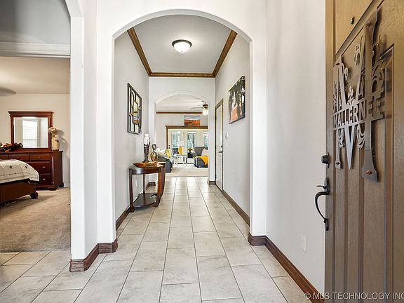 Unbelievable opportunity to purchase a like new single story custom home without having to wait for new construction nor pay new construction custom home pricing!!. The property features numerous upgrades, including but not limited to: High-quality granite in all wet areas of the kitchen and bathrooms providing an elegant and durable surface. Upgraded crown molding, adding a touch of sophistication and visual appeal to the doors, windows, and rooms. The carpeting has been upgraded to a higher quality, ensuring both comfort and durability. Ceramic tile flooring, is known for its durability, easy maintenance, and aesthetic appeal. All cabinets are made of solid wood, providing a high-end and durable storage solution equipped with a soft-close mechanism, allowing for smooth and silent closing of drawers and cabinet doors. The kitchen is equipped with a well-appointed 5-burner gas cooktop and a convection oven microwave, providing modern cooking conveniences. The seller is leaving 4 flat screen televisions and French door stainless refrigerator! Open split floor plan with large covered patio give ease of living and entertaining. Large oversized 2 car garage with a 1/2 car bump out for storage or work bench. The property is also fully fenced, ensuring privacy and security. Seller is offering a 1 year home warranty for ease of mind too!!! Don’t wait too long to see this fabulous home near Skiatook Lake.