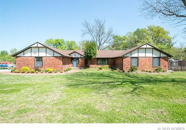 One level all brick home on one acre. Updated finishes throughout w/granite kitchen, new appliances,wood & tile flooring. 2 very large areas plus sunroom. 4 bedrooms w/2.5 baths. very clean, nice home in Jenks West schools. Newer vinyl thermal windows.