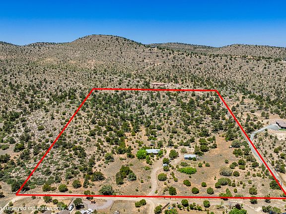 Experience the serenity of this 11-acre property nestled in the foothills of Chino Valley. Offering a perfect balance of seclusion and convenience, just a short drive from the pavement and close to shopping. Block constructed, presenting an open-concept living room with a wood-burning fireplace and tongue-and-groove cathedral-beamed ceilings. Step outside onto the covered flagstone patio to immerse yourself in the breathtaking views of the bordering state land and private hiking trails. The oversized shop/garage is ideal for cars, woodworking, or equestrian pursuits. This is a unique opportunity to live on a large parcel close to town or divide it and build a few homes. This home is being sold as is. Most personal items to stay at home.