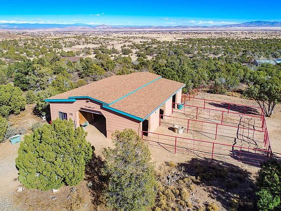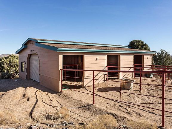 5.43 Acre Horse property in the West Hills of Chino Valley offers maximum privacy yet easy access to state trust land and many riding trails in Williamson Valley and Chino Valley. Immaculate 3 Stall Barn with Hay storage, tack room, attached turnout corrals and round pen. Full electric & water hookups in barn plus electric hookups & RV dump on property. Inside of home offers beautiful Knotty Pine cabinets and ceilings, Real rock fireplace & additional efficient wood burning stove. Kitchen is perfect for the chefs in the family with lots of cabinets, counter top space and walk-in pantry. Laundry room and mud room off kitchen with 1/2 bath. Home is in excellent condition, ready to move into. Enjoy the panoramic views with gorgeous sunsets and sunrises. Barn is 1512 square feet...