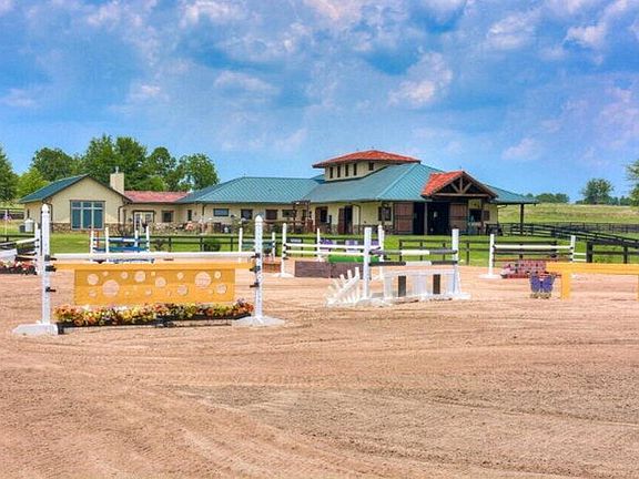 - Horse amenities: Feed Room, Grass Field, Office, Paddocks, Ring, Run-In Shed, Tack Room, Washer/Dryer Hookup, Water & Electric
