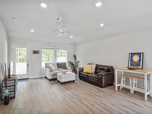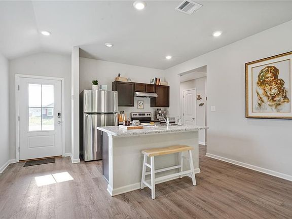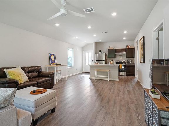 ADORABLE & 1-year young. LIGHT, BRIGHT & AIRY vibes are complemented by the vaulted ceilings, wall color, recessed lighting & warm tones throughout. Open Floor Plan w/ Kitchen & Living Area & Split Floor Plan w/ Primary & Guest Bedrooms. Cordless Custom Blinds throughout. Security System w/ Cameras. All Stainless Steel Appliances in Kitchen - ALL Kitchen Appliances & Washer/Dryer are Negotiable! Fully Fenced-In Backyard w/ Shed & Firepit - Lot backs up to Green Space. Flood Zone X - NEVER FLOODED!