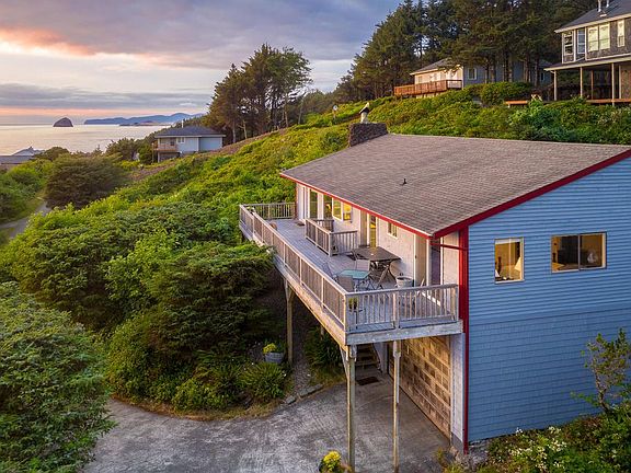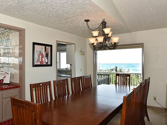 Enjoy ocean views from the second floor deck off the main living area. Basement 1st floor with attached garage and paved driveway. Lovely stone wood burning fireplace anchors the great room. One step up to dining room with convenient wetbar. Two bedrooms on main level, one of which is a Master with ensuite bathroom. 2nd full bath also on this level. Lower level is a bedroom, another full bath (shower, no tub) and spacious game/media room with pool table. Enter from garage on this level. Back deck provides a sheltered area for grilling and a cozy firepit. Beach access via trail directly across the street, or short drive to beautiful Winema beach. Successful vacation rental is being offered TURNKEY! Furnished and ready to rent or enjoy with family and friends.