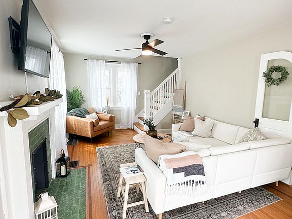 The 1st floor has a spacious family room, dining room and fully equipped kitchen that opens up to the backyard and double porch. The porch is perfect for relaxing or entertaining, with a flat grass yard, and beautiful oak tree enclosed in a wood 6-foot-high privacy fence. The 2nd floor has 3 bedrooms, and a recently updated full bath. The bathroom features a custom closet with built-ins that will hold all of your toiletries and linens. This home also has a fully renovated basement with another living space, laundry room, bar area and half bath. A one car garage is detached from the home for your use and there is plenty of available on-street parking in front of the house.