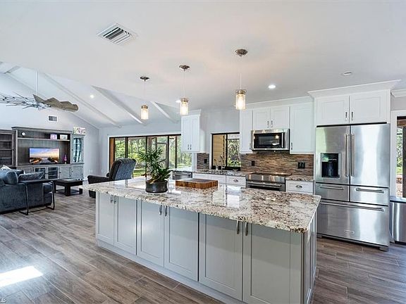H10285- Waterfront Equestrian Estate with Gulf Access via the Orange River in Fort Myers, with 2 well-crafted coastal inspired homes on 11.32 acres you must see! As you enter thru the gates under a canopy of mature trees before coming to an open pasture flanked by the two lovely homes. Horse stable offers 4 stalls, 4 paddocks, two turn outs, a dressage arena, a tack room with AC, an extra feed room and an abundance of extra storage as well as a covered wash area. All of the pastures include water so tending to your livestock is simple. Deep water access offers the ability to take a sunset cruise when you finish riding and taking a dip in the pool or the chance to catch dinner on the shores of the Orange River or out on the Gulf of Mexico. The main house, a 3Bed/2Bath/2car with pool and spa sits on 9.32 acres with just over 300' of river frontage, fencing & cross fencing. Open floor plan is an entertainer and chef’s delight, offering lots of space indoors and out to the pool and riverfront beyond as well as ample entertainment space with a quiet and serene backdrop. Enjoy chilly winter nights by the fireplace at either home with the promise of what is sure to be more great weather the next day in the sunshine capital. The second home is a 3Bed/2Bath/2car on 2 acres and includes the barn.