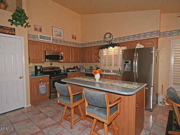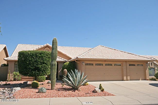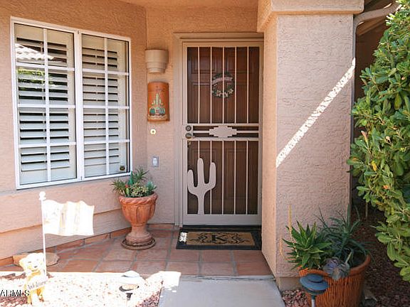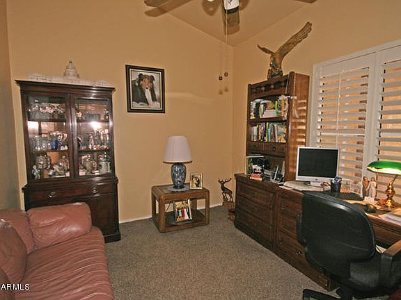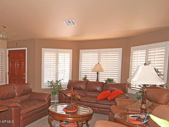 Elevated lot backs to natural desert open space, with view fence. Great floor plan including bay windows in living room and kitchen, a large den with double doors off the living room. Family Room with fireplace is open to kitchen and patio. Wood Burning Fireplace has electric logs. Updated kitchen with Corian counters, refinished cabinets, island, pantry and stainless steel appliances. 3-car garage with access to backyard & a utility sink. Also, Plantation Shutters, newer Lennox A/C & Heat & Arcadia Door to extended patio. Water Softener, Hot Water Heater & Garage Opener were replaced in 2015. Gorgeous professional landscaping in front and back. Very private lot with views!
