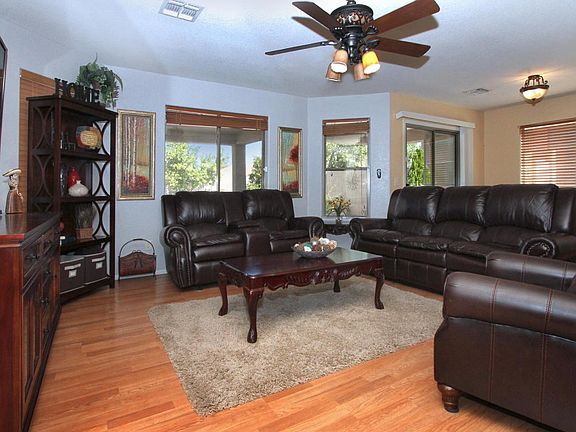 Loads of charm in this 3BR/Loft w 3 BA beautifully designed home. Designer updates throughout.Spacious great room, open, neutral kitchen w eat at breakfast bar, newer appliances SS gas stove. Wood laminate flooring in living areas, wood blinds, upgraded light/fan fixtures. Large Master Suite with dual vanity sinks, large walk in closet. 2 spacious guest bedrooms and wonderful loft for many uses, study, tv room, play area. Serene back Patio features extended deep patio cover. Large area thats perfect for entertaining, Fruit trees, mountain views and block wall was raised for additional privacy in yard. Don't miss this lovingly cared for home. Close to I-10 shopping, schools and private neighborhood basketball park.