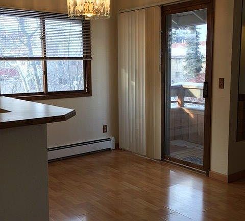 Close to hospital and University, Freshly painted, Second floor unit with fire place, 2 bedrooms 2 bath, dishwasher, garbage disposal, stackable washer and dryer, private covered deck, 1 car secure under building parking with additional outdoor parking, new screen door, Large secure storage room in garage, carpet cleaned. Building to be painted Spring of 2017