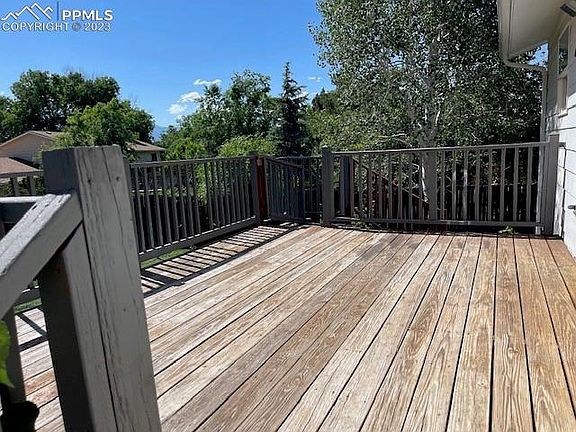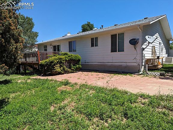 This large ranch style home has 4 bedrooms, 3 bathrooms, and an attached 2 car garage. Quiet neighborhood. Very close to Schriever Air Force base and Fort Carson. Located close to schools, parks, and the YMCA. Nice views of the peak. It has a full finished basement. Has new carpet. Backyard is large completely fenced in and great for dogs. It has a large 10x15 wood back deck that is great for entertaining. Has mature trees. Needs a little TLC... as this was a rental property for several years. This family home has a lot to offer.