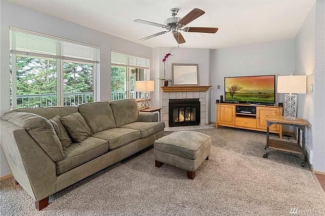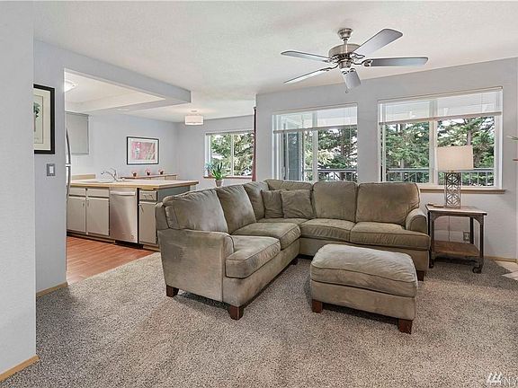 Top floor private sanctuary in the heart of Renton Highlands! Enjoy the open concept floor plan with New Stainless Steel Appliances, Tile, Plush Carpet, Windows, Sliding Door, and Fresh Paint through out. Relax by the Fire in this spacious 2 bed condo with updated Master and Extra Half Bath. Washer and Dryer included. Enjoy Peaceful Scenery from a Spacious Covered Balcony. Plenty of Parking & Excellent Commuter Location! Walk to restaurants, shopping, neighborhood park and more!