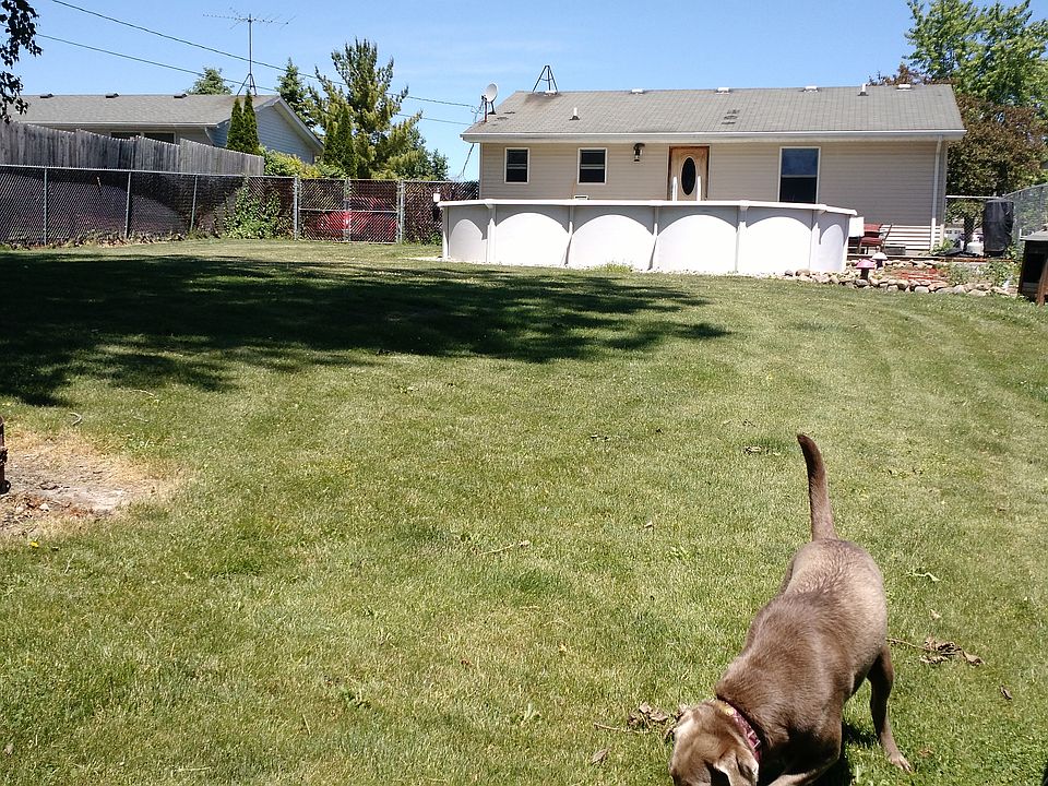 Garden is planted and the pool is open for you to enjoy this 3 bedroom 1.5 bath home. Slate flooring in the full bath, wood floor in the half bath, ceramic in the eat in kitchen, new carpet in the living room and bedrooms. Vent free gas fireplace in the living room cuts winter heating costs. Full basement is partially finished including drywall and carpet. Laundry, workbench and storage shelves in unfinished portion of basement. Large steel storage shed in backyard.
