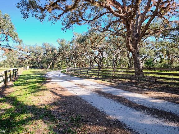 Gorgeous Horse farm on 11 + acres with two homes, 4 stalls, 4 paddocks, two turn outs, a dressage arena, a covered wash area, a tack room complete with AC, an extra feed room and plenty extra storage on the historic Orange River. All of the pastures include water so tending to your livestock is simple. When you finish riding you can relax in the pool or dip a line in the Orange River. Jump in your kayak and explore what Florida has to offer right from your backyard. The main house sits on 10.12 acres with fencing & cross fencing and 300' of river frontage. Enjoy chilly nights by the fireplace and learn to cook gourmet meals in the large spacious kitchen. The laundry room features abundant cabinets making an excellent butler's pantry, fold and sort laundry, or store crafting or homeschooling supplies. The second home is a 3/2 on 2 acres and includes the barn. This home offers 2516 sq ft of living area, a fireplace, screened lanai, a 2 car garage and an additional work area. This homes presently share the driveway and barn making this an equestrians dream. Air BNB, multi generational home, or wedding venue potential on this oak filled property with Old Florida Charm.