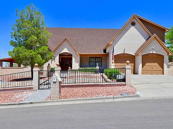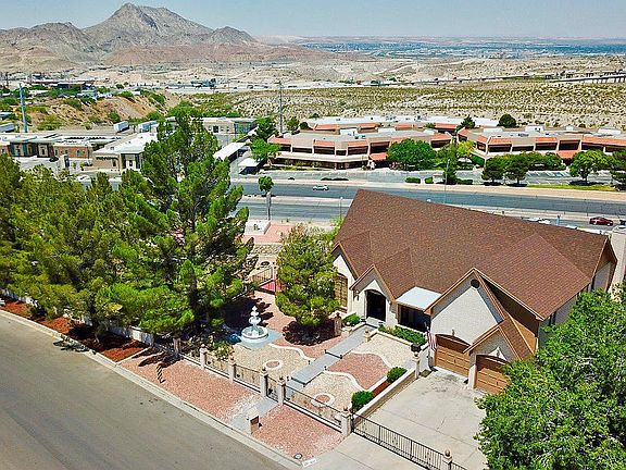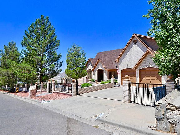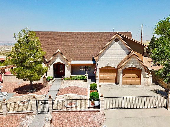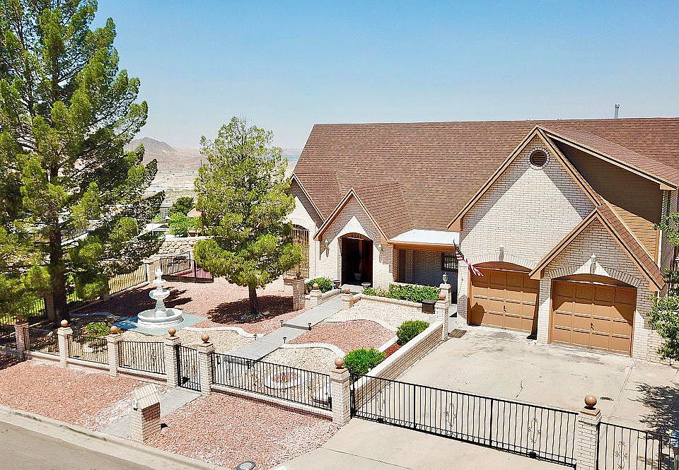Amazing 2 story brick beauty with breathtaking views, located on a 12,019 SQFT view lot with 5 BDRMS + 4 total BATHS + flex room!! This home features: new roof (June 2020), new installed refrigerated air unit, enclosed property with gate, fresh interior/ exterior paint, freshly cleaned carpets. Large flex/ game room, formal dining room, large kitchen with island, tons of cabinet and counter space, breakfast nook, family room with vaulted ceilings, impressive fireplace that serves as the focal point. 2 bedrooms and 2 bathrooms downstairs. Staircase leads you to master bedroom suite, balcony overlooking Franklin Mtns and Valley, master bathroom with jetted tub, separate walk in shower, dual vanities. Enormous walk in closet fit for a queen! Wood laminate flooring, landing overlooking family room, elongated storage closet. Backyard features: zen garden, large elongated open covered patio, side lawn with plush green grass. Close to shopping, UTEP, restaurants, plus much, much more!!