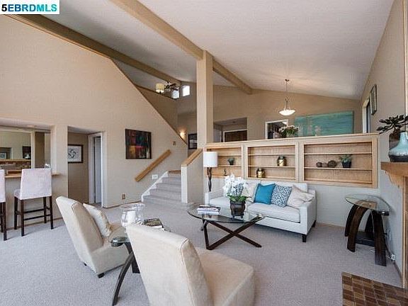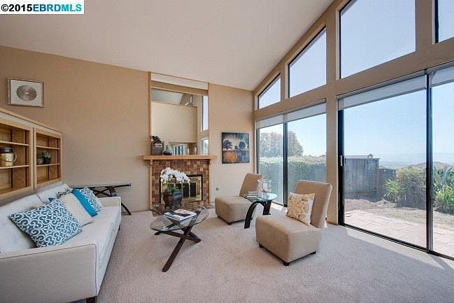 Sunny 3+bd/2ba, bay vu. Soaring ceilings, 2 FP, Updated eat-in kit. spacious mst suite. Great loft overlooking main flr - perfect for hm office, Fam Rm, TV rm or quiet get away. Built-in window seat - gaze at the vu, read or unwind after a busy day. Refrig, washer/dryer incl. cul-de-sac.