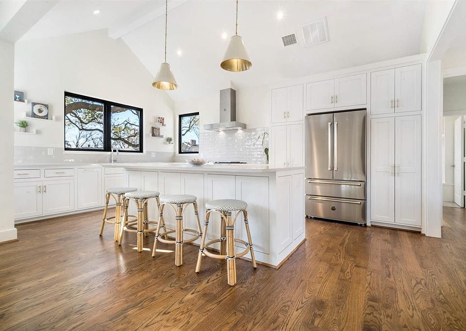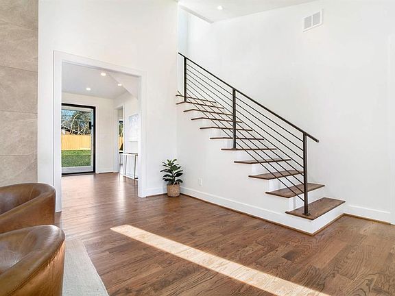 Wonderful family home built on oversized, interior lot, with pool and large yard. Construction just completed and offers open floor plan, hardwoods, and views to the backyard from light and open living room. Amenities include five generous bedrooms, four baths, study, island kitchen with commercial grade appliances, downstairs master, game room, and large utility room with mudroom built-in. Fifth bedroom is downstairs and easily usable as a cozy third living area. Great closets and windows throughout the home. Private schools are convenient to the neighborhood and main thoroughfares are easily accessible. Property has been expanded from original foundation, including existing chimney structure and garage.