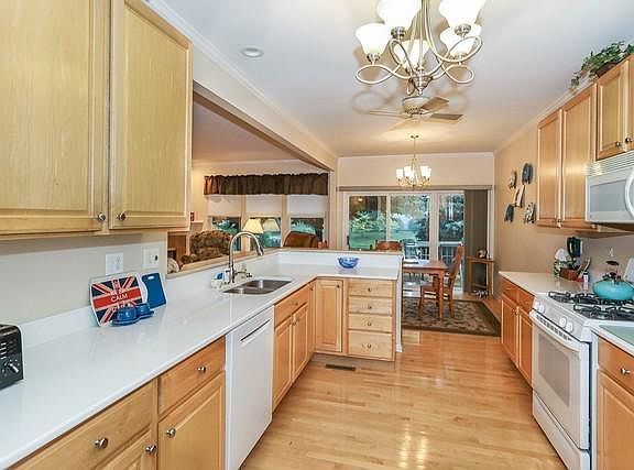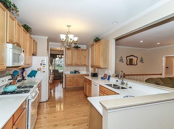 Beautiful custom brick front ranch with one of the best locations in the subdivision! Backs to peaceful pond with water feature and walking path! New expanded driveway! Open floor plan! Cozy family room with crown molding, corner gas fireplace and great views! Upgraded eat-in kitchen with newer quartz countertops, extended custom cabinetry, crown molding and separate eating area with sliding glass doors to the custom deck! All appliances stay! Separate flexible living/dining room! Spacious master bedroom with hardwood floors, huge walk in closet and private garden bath with oversized dual sink vanity, soaker tub, separate shower and tile flooring! Convenient 1st floor laundry! Huge partial finished basement with 9' ceilings and bath rough-in! Clean and neutral throughout! Furnace & A/C '17! Roof '14! Newer plumbing fixtures! Pride of ownership! Close to all the shopping! Shows like a model!