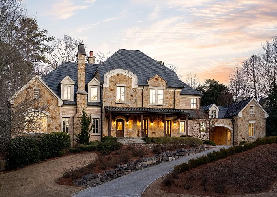 Situated on a quiet Buckhead cul-de-sac, this timeless stone and brick estate combines exceptional craftsmanship with an enviable location near Jackson Elementary and Atlanta’s top private schools. Thoughtfully designed for both everyday living and refined entertaining, the home offers a seamless blend of scale, function, and timeless elegance. A spacious covered front porch opens to a dramatic two-story foyer, framed by a formal dining room on one side and a richly paneled fireside library on the other, ideal for a private home office. At the heart of the home, a large family room with a fireplace and wood-beamed ceilings offers an abundance of living and entertaining space, flowingly effortlessly into a newly reimagined designer kitchen. Anchored by a substantial central island, the kitchen features a blend of stained and white cabinetry, stone countertops, and a full suite of professional appliances. Adjacent to the kitchen, a light-filled breakfast room provides a welcoming space for casual gatherings. The main-level primary suite serves as a private retreat, complete with a fireplace, a cozy seating area, dual bathrooms—one with a soaking tub and shower, the other with a shower—and two custom walk-in closets. Upstairs, four generously sized en-suite bedrooms offer ample privacy, while an open-concept bonus room and a cedar closet add flexibility and storage. For convenience, laundry facilities are located on all three levels. The expansive finished terrace level offers significant additional living space with a wet bar, a fireplace, and a variety of rooms that can adapt to a range of needs, from guest accommodations to recreation areas. Outdoors, a covered rear veranda off the main level provides generous space for dining and lounging, while the 1-acre lot offers an abundance of privacy and ample room for a pool and play yard. Additional features include a 3-car garage, a 3-stop elevator, and a slate roof, ensuring this residence is as practical as it is enduringly elegant.
