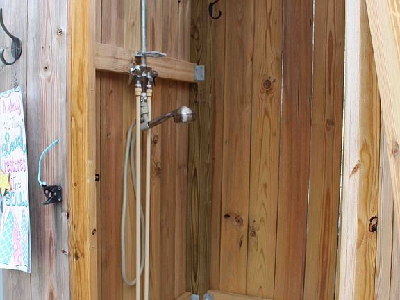 1300 sq.ft. manufactured home on a .22 acre lot; 3 bedrooms, 2 baths; split plan with master suite on one end and children/guest rooms and bath on the other; family room, kitchen and dining, and utility room in between; home was totally reset with new tie-downs, pier supports, and under pinning in July 2012, put in new carpet in family and bedrooms, and new laminate flooring in kitchen and dining. Home has covered front porch and an open 12'x24' rear deck, and outdoor shower; detached 12'x24' garage/workshop, great for storing the beach toys. HOA fees are $280/yr. and the community pool is short walk from this house. Most of the furnishings are negotiable.
