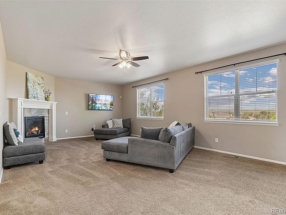 Welcome to a home where space, style, and comfort come together in perfect harmony. Set against the backdrop of the 16th tee at Spring Valley Golf Club, with panoramic views of Pikes Peak and unforgettable sunsets, this expansive two-story residence offers a peaceful and elevated living experience. With 5 generously sized bedrooms and 5 bathrooms, this home is designed for both relaxation and entertaining. The main level blends formal and casual spaces seamlessly—from the elegant dining area to the expansive kitchen and great room, anchored by a sleek gas fireplace. The kitchen stands out with an eat-in island, ample cabinet storage, and a walk-in pantry—tailored for effortless hosting and daily living. A main-floor bedroom with a private ensuite adds flexibility, perfect for guests or multi-generational living, while a thoughtfully placed powder bath enhances convenience.